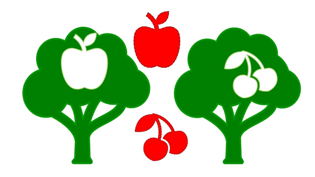 При выполнении задания можно вырезать яблоко и вишни и приложить к трафарету на дереве.