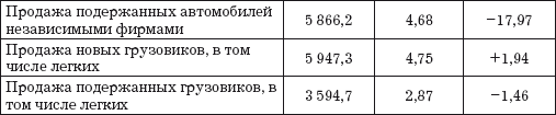 Европейский авторынок довольно стабилен – годичные колебания сбыта составляют ±5 %. Средняя прибыльность и в продажах, и в возврате инвестиций опасно низка. Нетто-прибыль в этом секторе после выплаты налогов в 2004 г. составила 0,6 %. Наличие значительных избыточных мощностей у производителей порождает острейшую конкуренцию. Так как маржа автокомпаний и дилеров в ценах на автомобили очень мала, практически не осталось возможностей для маневрирования ценами. Если для конечного потребителя снижение цены на 100 евро мало что значит по отношению к цене автомобиля, то для дилера и автокомпании эта сумма значительна и может быть достаточной для дестабилизации финансового положения малых предприятий. Ниже приведены данные оборота в торговле автомобилями в Германии.