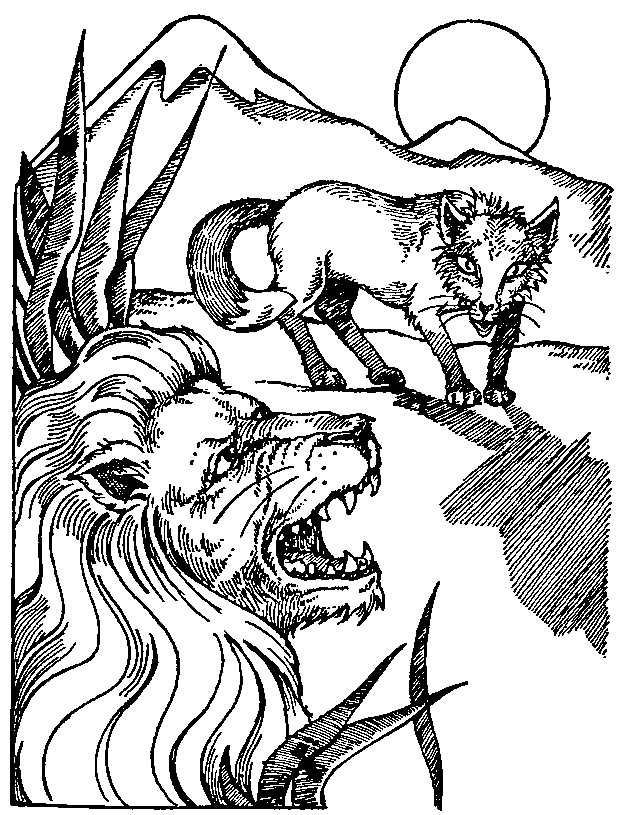 Когда Лиса в первый раз увидала Льва, она до того перепугалась, что чуть не умерла со страху.