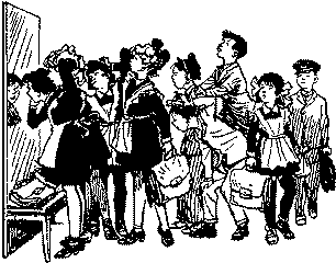 Если кто-нибудь из первоклассников слишком разбегается на перемене, его ловят и щёлкают по затылку. Один раз поймали и щёлкнули Борю. Боря закричал: «Вот как вы с молодёжью обращаетесь!..»