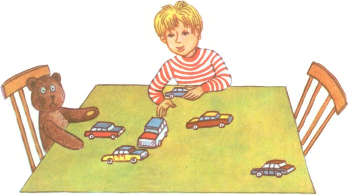 Вот какая речка. Мальчик снова зажмурится. Подождёт чуточку и откроет глаза. Нет речки. Автомобильчики построились в большой цветок.