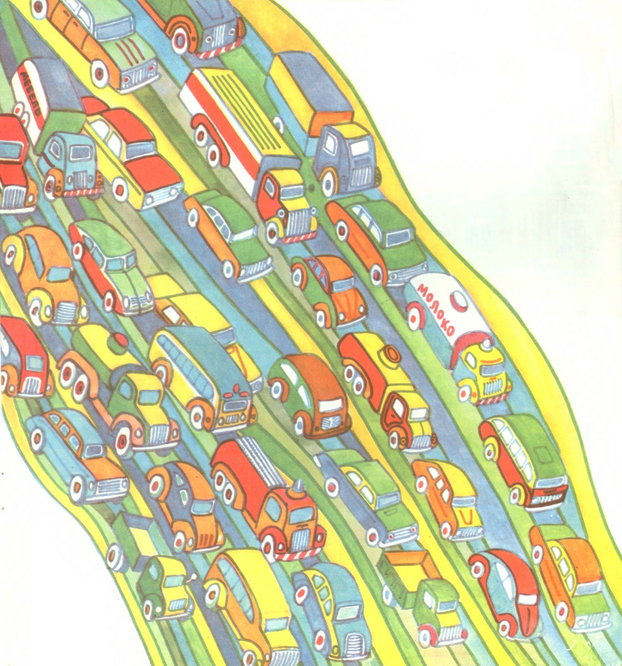 Да. Сразу не догадаешься. Автомобили были разноцветными: красными, жёлтыми, синими, голубыми, зелёными, оранжевыми. И они очень хорошо умели играть в прятки, эти разноцветные автомобильчики.