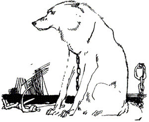 Его держали на толстой железной цепи, а так как продовольствия ему не полагалось, то кормили мясом убитых бродячих собак.