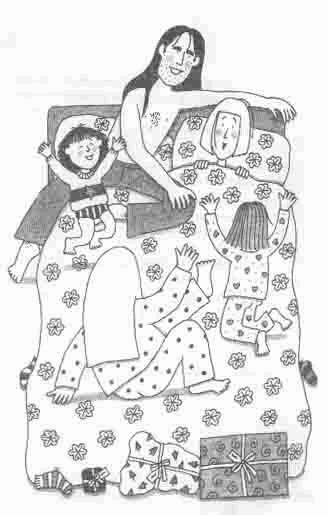 — Если ты залезешь сюда и уютно устроишься в постели, я тебе расскажу новую сказку про принцессу Виту, — сказала я. — Это рождественская сказка о том, как Вита прилетела в мастерскую Санта-Клауса и он позволил ей самой выбрать себе подарки. И она познакомилась с миссис Рождество и со всеми их детишками — Ритой Рождество, Ровеной Рождество и маленьким Роджером Рождество.