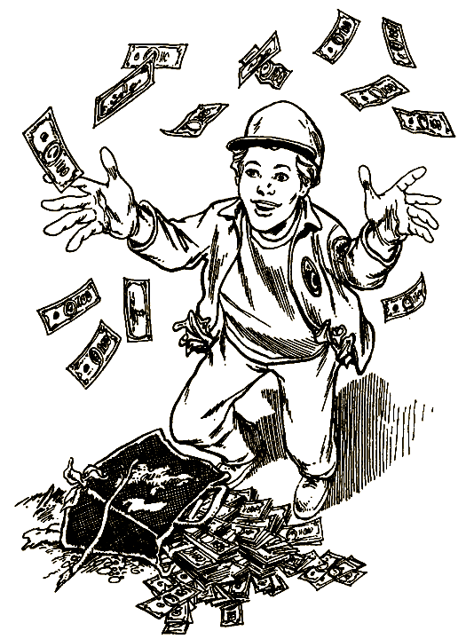 Портфель довольно тяжелый. Ты уже собираешься сказать что-то Брюсу, расстегиваешь портфель — и замолкаешь на полуслове, когда раскрываешь его и заглядываешь внутрь. Глаза у тебя начинают ползти на лоб от изумления, и ты шепчешь: «Вот это да… Сколько денег!»